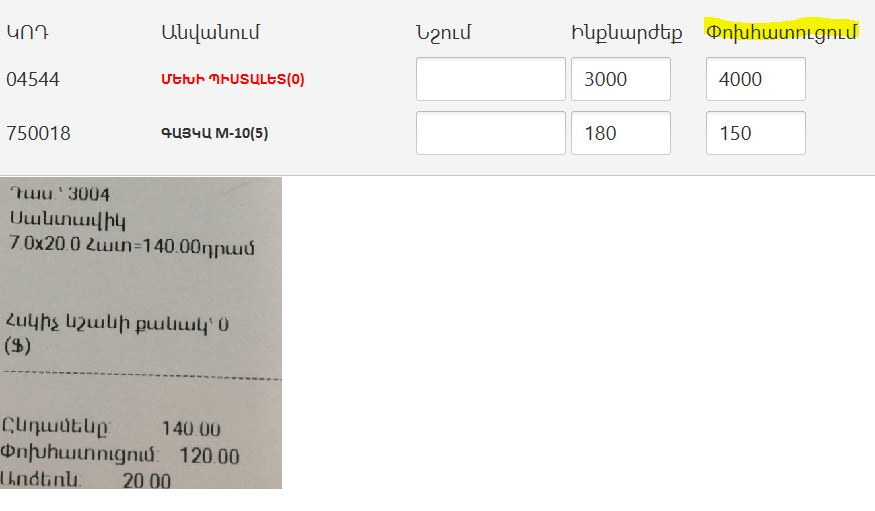 4. Տրամադրվել է բազա 4000ից ավել ապրանքների անվանումներով որի օգնությամբ հեշտացվել է ամբողջ խանութի անվանումների գրանցումը։
